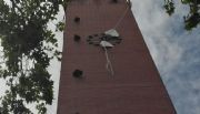 El fuerte viento tiró al suelo una enorme estructura ornamental que estaba colocada en el campanil de la Iglesia Catedral.
