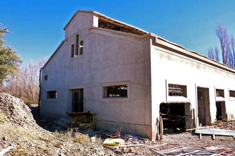 Conservando todo el esplendor de tiempos pasados, la bodega de sidra y empaque de manzana es una de las primeras edificaciones de Guañizuil. Las imponentes puertas de hierro podrían volver a abrirse si se concreta el proyecto para reciclar la bodega y volver a elaborar sidra y calvados en la estancia, como hace más de 80 años.