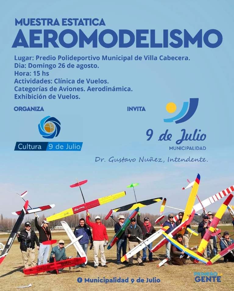 Este fin de semana, el Polideportivo Municipal de 9 de Julio abre sus puertas para la Muestra Estática de Aeromodelismo, una serie de eventos aéreos y terrestres que incluirá una clínica de vuelos explicando a chicos, grandes y público en general.