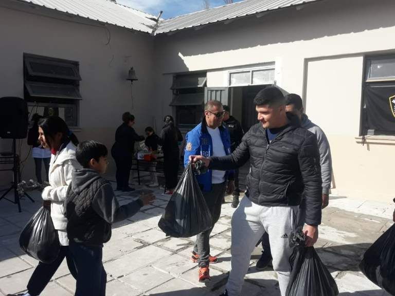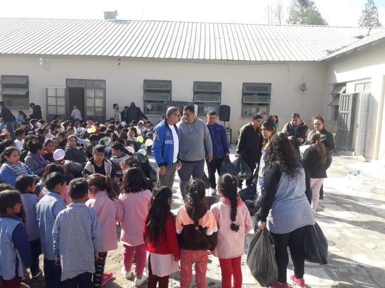 Personal policial de Motorizada Nº4 de la localidad de Marquesado tuvo una buena iniciativa, entre todos los uniformados juntaron gran cantidad de alimentes no perecederos y prendas de ropa, para entregar en una escuela de Caucete.