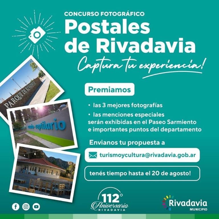 Si te gusta la fotografía y sos de Rivadavia, no te quedes sin participar del concurso fotográfico "Postales de Rivadavia, captura tu experiencia". Así invita la Municipalidad a participar a sus vecinos y vecinas de un concurso que persigue mostrar al departamento, retratado por quienes mejor lo conocen: sus habitantes.
