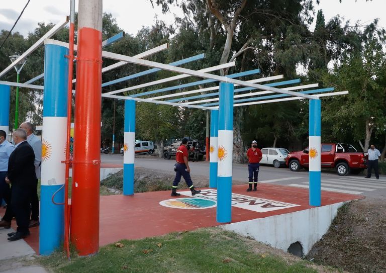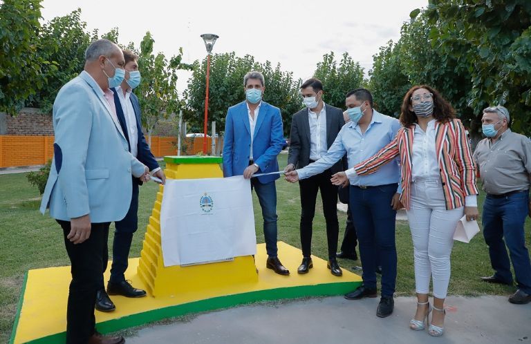 Además, inauguraron formalmente las refacciones de la plazoleta Madre María, que actualmente cuenta con nueva iluminación led, instalación de riego por aspersión, forestación, pintura, refacción de la gruta, construcción de sala de mantenimiento, veredines, mejoras en garita de colectivos, sala de bombas y entronización del Tótem de la FNS 2020, lo que representa la Evolución del departamento.