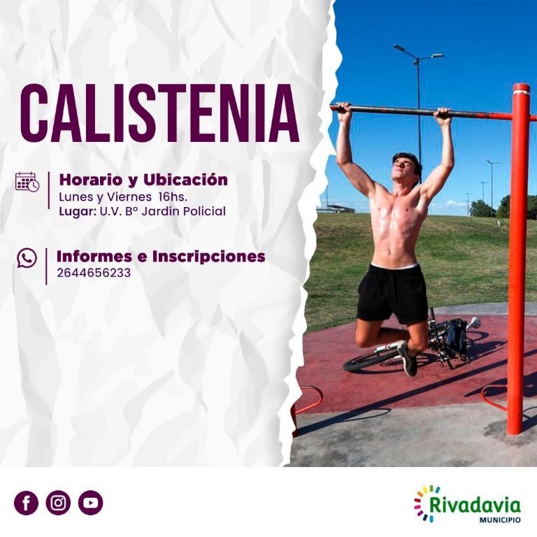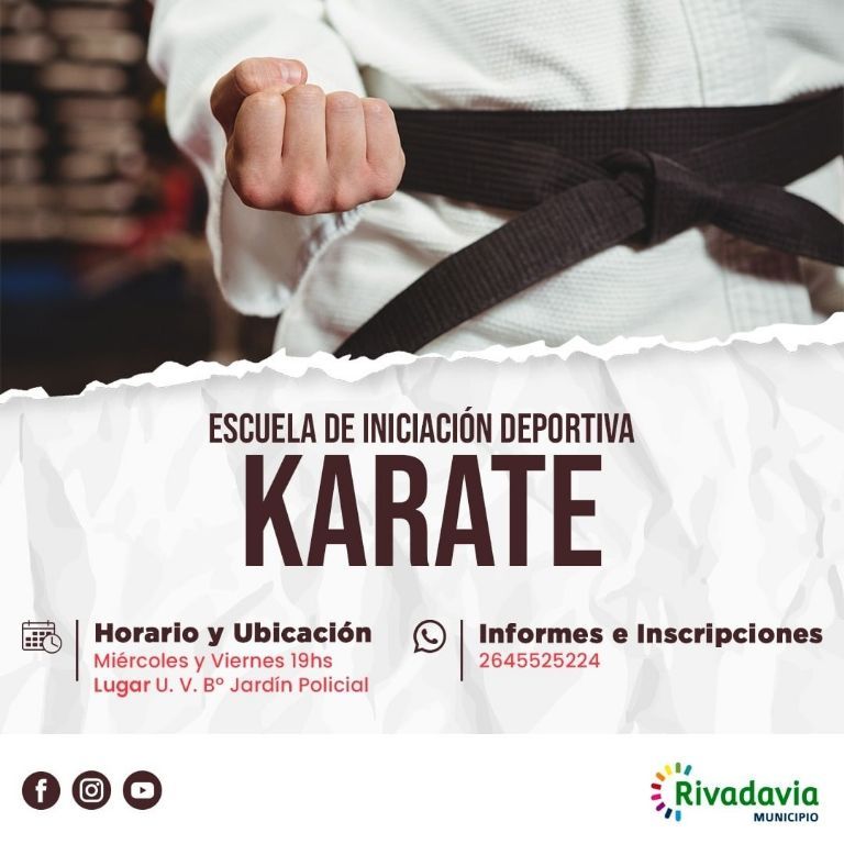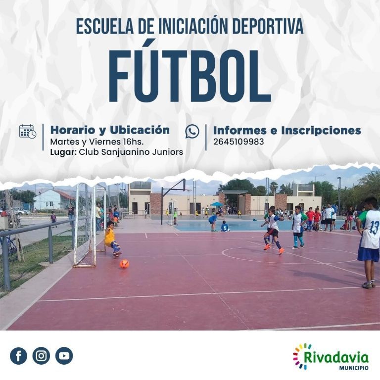 La Municipalidad de Rivadavia informó sobre las diferentes propuestas de las actividades deportivas, totalmente gratuitas, que se dan en el departamento. Todas las actividades se realizan con estricto protocolo y los cupos son limitados Los cupos son limitados y se pueden pedir más informes en los teléfonos que se detallan a continuación.