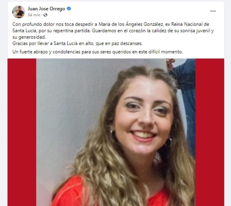 El mismo intendente de Santa Lucía, Juan José Orrego, la despidió en las redes cuando comenzó a circular la noticia de su fallecimiento. "Guardamos en el corazón la calidez de su sonrisa juvenil y su generosidad. Gracias por llevar a Santa Lucía en alto, que en paz descanses", dijo.