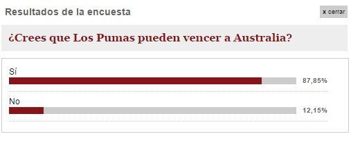 En una nueva encuesta realizada por Tiempo de San Juan los lectores respondieron a la consulta de que si creen que Los Pumas pueden vencer a Australia.