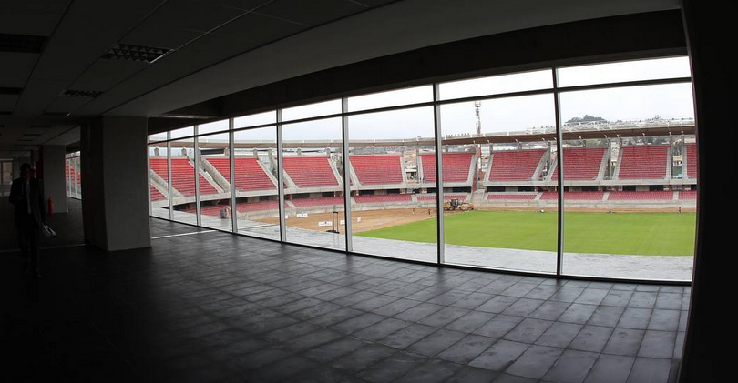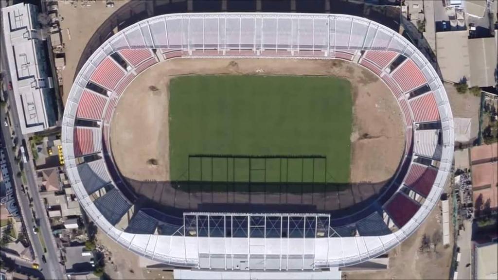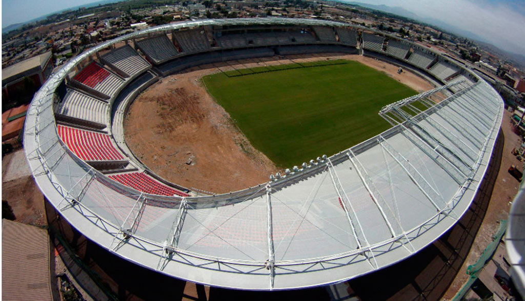 Vista exterior. Ingenieros y funcionarios de La Serena mirando los avances. El esqueleto de La Portada.