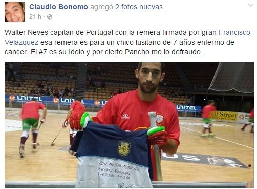 El capitán de Portugal, amigo de Velázquez, le contó la historia al jugador argentino que se conmovió, le mandó la camiseta (con Bonomo de intermediario) y aseguró que buscará la manera de seguir ayudando al chico.