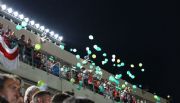 Previo al encuentro, con los jugadores en cancha, se realizó un minuto de silencio y fue allí cuando los miles de hinchas millonarios y del Lobo coparon el estadio con globos verdes.