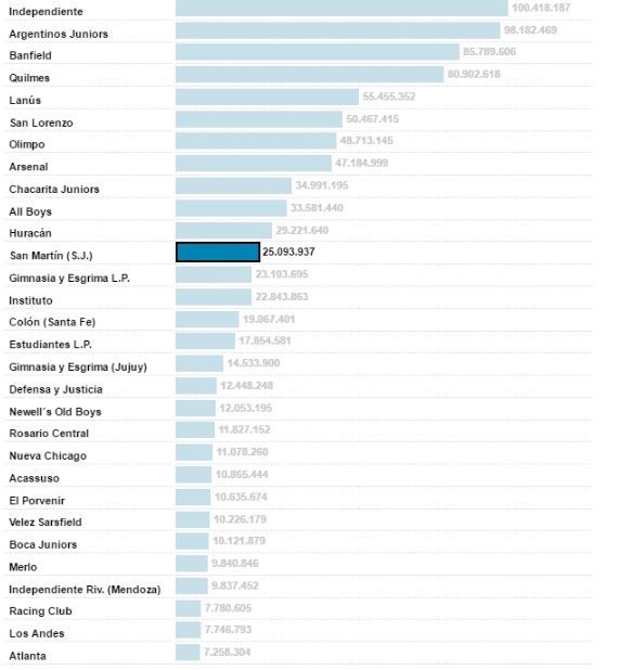 debajo suyo está All Boys, que debe algo más de $ 33 millones, pero cuyo rojo