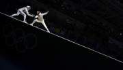 Multiple exposiciòn de la competencia de esgrima entre Ana Beatriz Bulcao de Brasil y Malina Calugareanu de Rumania. Foto: AFP / Fabrice Coffrini