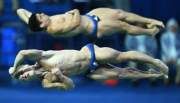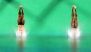 Los británicos Chris Mears y Jack Laugher durante la final de clavados sincronizados de trampolín de 3 metros.