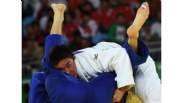 Mashu Baker de Japón (blanco) compite con el serbio Aleksandar Kukolj durante -90kg competición de judo de hombres.