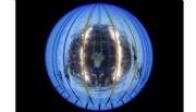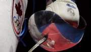 El oponente reflejado en la campana de la espada de José Polossifakis de Canadá durante la ronda individual masculina numero 32 de esgrima.
