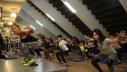 Son las 19.30 del día jueves y más de 50 personas de todas las edades invaden el sector de gimnasio del estadio Aldo Cantoni. No cabe ni un alfiler y los encargados del lugar están obligados a correr las bicicletas y máquinas del gym para la comodidad de las chicas. Eso producen las clases gratuitas de Karina Palacio, quien desde hace 11 años, gracias a la secretaría de Deportes, brinda una combinación de entrenamiento y diversión que es todo un boom.