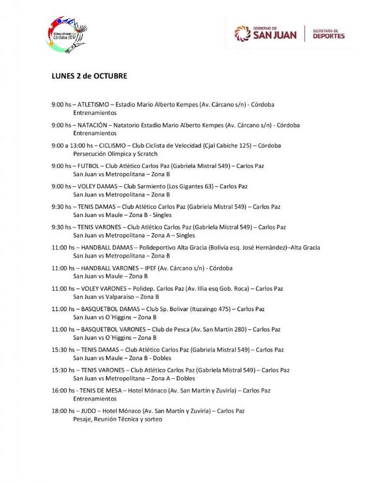SUSCRIBITELos Juegos Binacionales 2017 arrancan este lunes 2 de octubre y la delegación de San Juan, con sus 197 atletas, ya está instalada en Carlos Paz, sede central de esta nueva edición.
