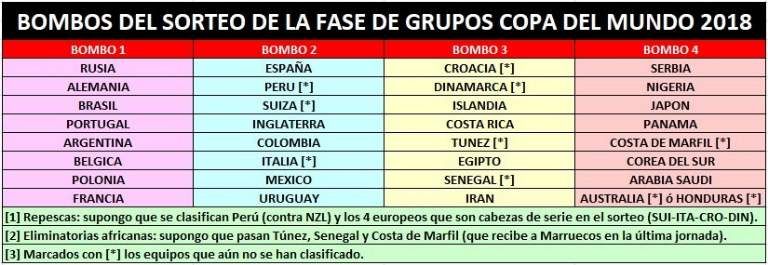 Lo primero que hay que hacer es entender la disposición de las selecciones en los copones, pese a que todavía no están cerrados porque faltan nueve clasificados, entre los repechajes y la definición de la eliminatoria de África.