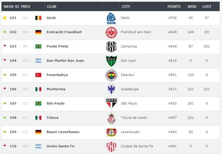 San Martín de San Juan marcha en una cómoda posición en la clasificación (12ª) de la Superliga Argentina después de su victoria, con gol olímpico incluido, frente a Arsenal de Sarandí. Pero también es digno de destacar por estos días su 104º puesto en el ranking mundial de clubes publicado en las últimas horas, el cuál tiene a Real Madrid, Barcelona, Atlético de Madrid y River Plate repartiéndose los primeros cuatro lugares.