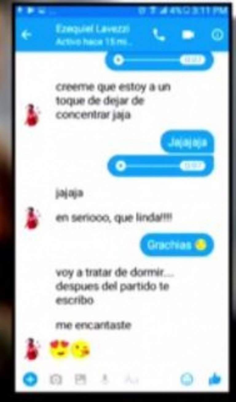 "Nosotros tenemos un amigo en común y por él lo conocí a Lavezzi. Un día me llegaron a mi Facebook un par de mensajes de una cuenta que decía Ezequiel Lavezzi. Ahí empezamos a intercambiar mensajitos", contó Mora y agregó que con el paso del tiempo la conversación se empezó a hacer por Skype.