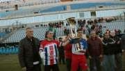Tras la vuelta olímpica, el titular de la Liga Sanjuanina de Fútbol, Alberto Platero, hizo entrega de los trofeos.