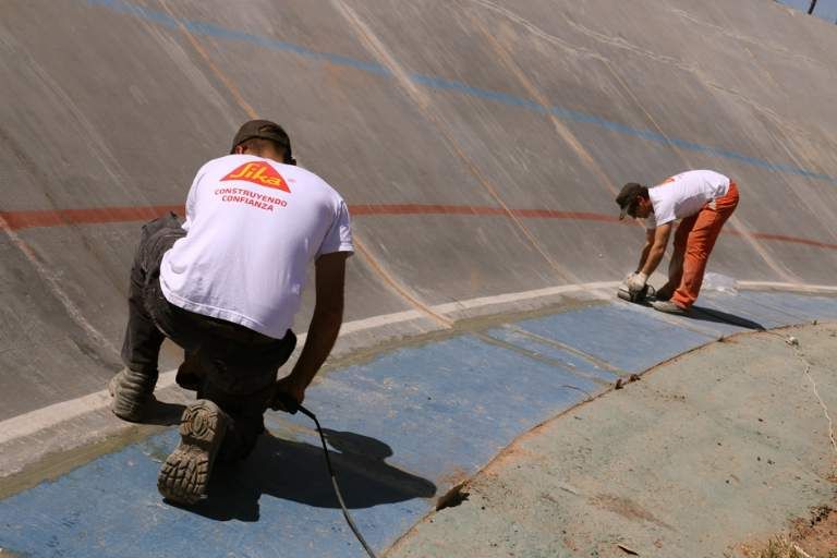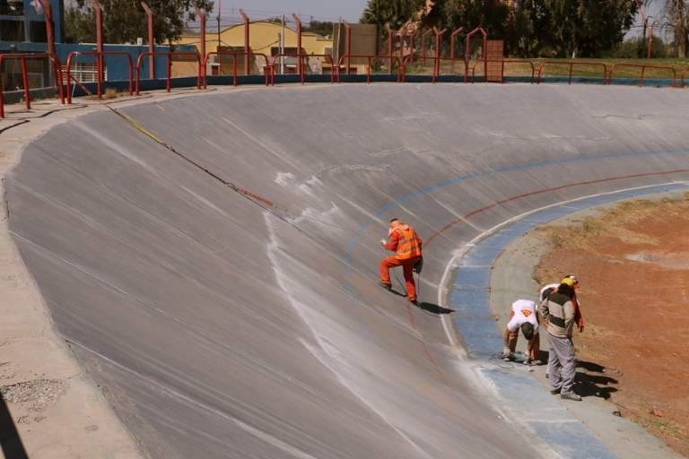 Las reparaciones están a cargo de la empresa Jorge Lorenzo Furlani. Hay entre 6 y 9 obreros trabajando desde hace dos semanas para dejar la pista en condiciones. "Sellamos las juntas de dilatación y reparamos todas las grietas que tienen todos los paños en distintas partes del velódromo. Luego se lija y se pinta todo de color gris, a excepción de las líneas que serán azul, roja y blanca", comentó Bautista Lorenzo, encargado de la obra.