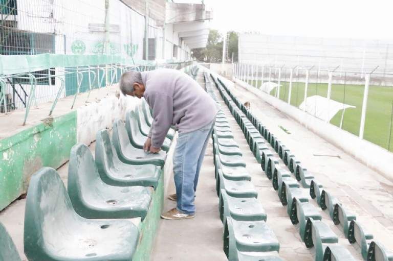 Según contó Norberto Molina, presidente de Desamparados, un grupo de hinchas se encarga de ponerle color al estadio. Sin dudas, una muestra de amor incondicional. "Sin los chicos no hay forma de pintar todo el estadio, es muy grande", apuntó el dirigente.