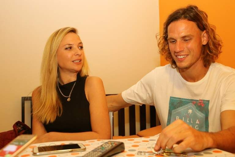 La pareja todavía no sabe el sexo del bebé pero aseguró que ya tienen nombres. “Si es mujer será Roma y si es varón Benedicto o Constantino”, contó la rubia. “Yo no pensé en nombres pero me gustaría que sea una nena”, afirmó Martínez Schmith.