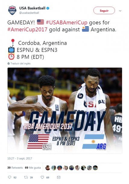 Es que desde la cuenta oficial de Twitter del básquet estadounidense (@usabasketball) promocionaron la final con un detalle que molestó y mucho: confundieron la bandera de Argentina con la de Uruguay.