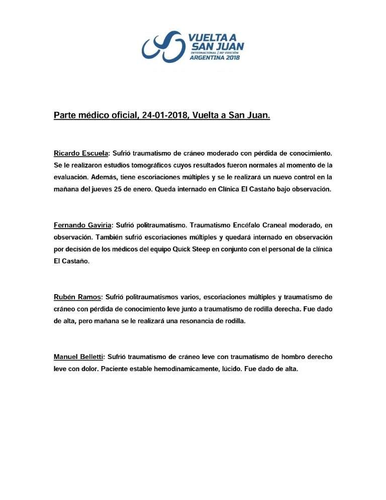 Desde la organización de la competencia dieron a conocer el estado de salud de Ricardo Escuela y los otros tres ciclistas accidentados. Léelo aquí.