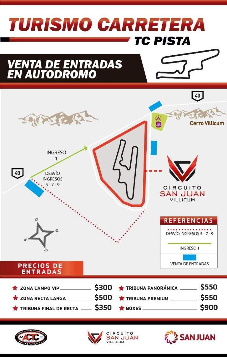 Este fin de semana el TC vuelve a San Juan, a girar por primera vez por el Autódromo Villicum. Para que puedas disfrutar de la carrera te dejamos toda la info para saber cómo y por donde ingresar, precios, detalle de las zonas de espectadores y servicios, dónde estará la venta de entrada y más.