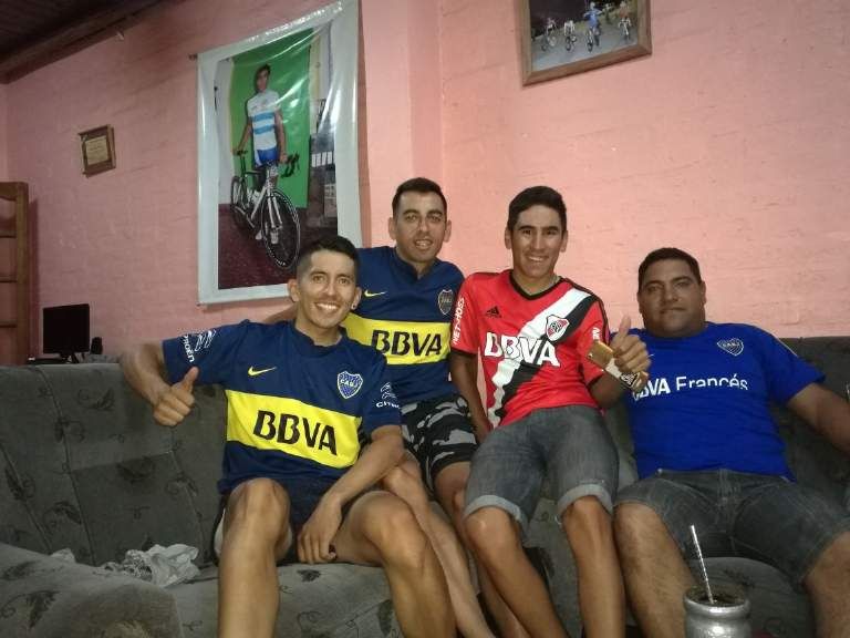 El Luto Molina, con su familia `millonaria´. Los ciclistas de Pocito, Camilo Mendoza y Gerardo Tivani, haciendo el aguante al equipo del Mellizo.