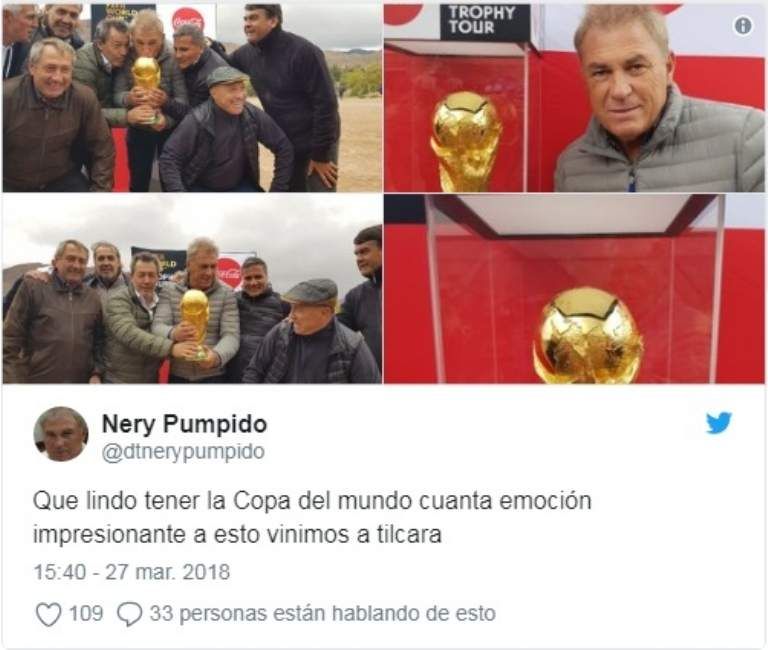 Ex jugadores del seleccionado argentino campeón mundial de fútbol en México 1986 llegaron hoy a Jujuy con el trofeo de la Copa del Mundo de la FIFA, que se pondrá en juego en Rusia 2018.