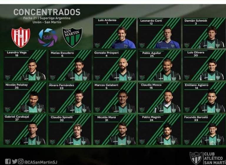 Recién llegado a San Martín, el DT Gastón Coyotte busca remontar en el partido ante Unión que se jugará este sábado en Santa Fe. Los 18 elegidos para su début como técnico son Luis Ardente, Leonardo Corti, Damián Schmidt, Leandro Vega, Matías Escudero, Gonzalo Prósperi, Pablo Aguilar, Luis Olivera, Nicolás Pelaitay. Alvaro Fernández, Marcos Gelavert, Claudio Mosca, Emiliano Agüero, Gabriel Carabajal, Claudio Spinelli, Nicolás Maná, Pablo Magnín y Facundo Barceló, según informó oficialmente el club. El plantel viaja a Santa Fe en colectivo.