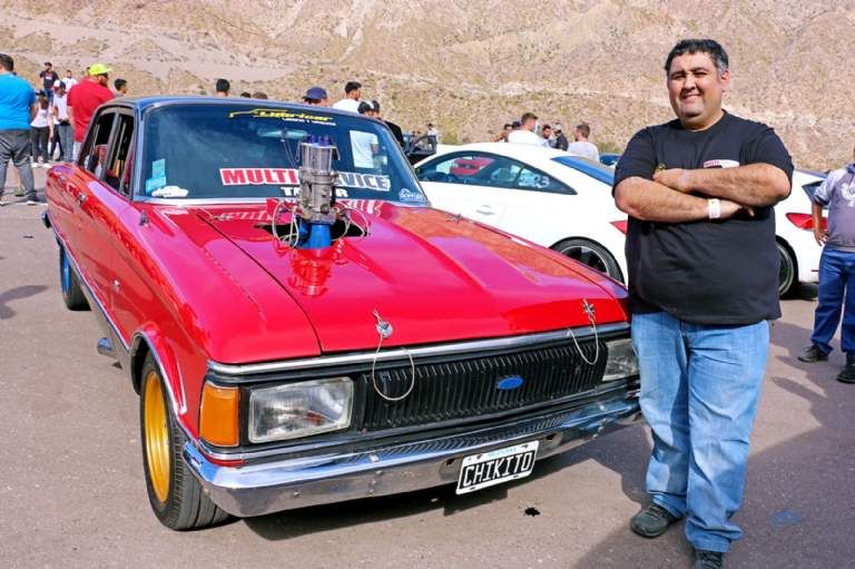 El santaluceño compite con un Falcon Sprint modelo 80, de color rojo, el mismo que le obsequió a su padre hace cinco años. "Mi padre era fanático de Ford y hace unos años le regalé este auto. Se lo compré al único dueño, que lo tenía 0KM. Es una reliquia", cuenta.