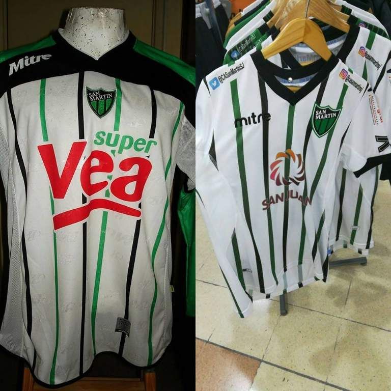 Blanca, con rayas verdes y cuello de color negro, así es la camiseta alternativa de San Martín. La novedosa casaca cuesta $1130 y ya está disponible en los comercios. La indumentaria está inspirada en un modelo del 2006.