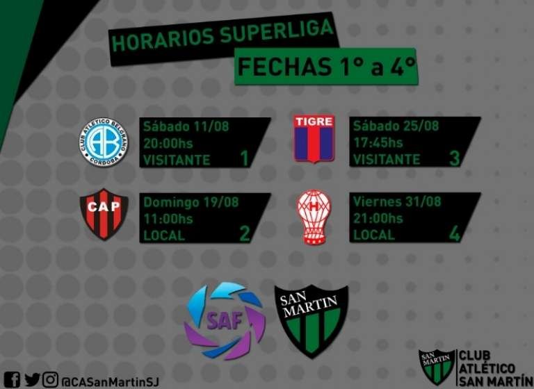 Ante Tigre la disputa está programada para el sábado 25 de agosto, a las 17.45, como visita. Para cerrar el mes, el 31 de agosto, el combinado sanjuanino se verá la cara con Huracán en el Hilario Sánchez, a las 21 horas.