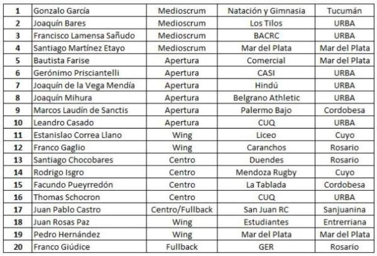 El flamante capitán del seleccionado M20 dirá presente en la doble jornada en Buenos Aires por el staff de entrenadores integrado José Pellicena, Enrique Pichot y Ricador LeFort. Además, participarán los chicos de la M18 de seven que participarán en los Juegos de la Juventud Buenos Aires 2019.