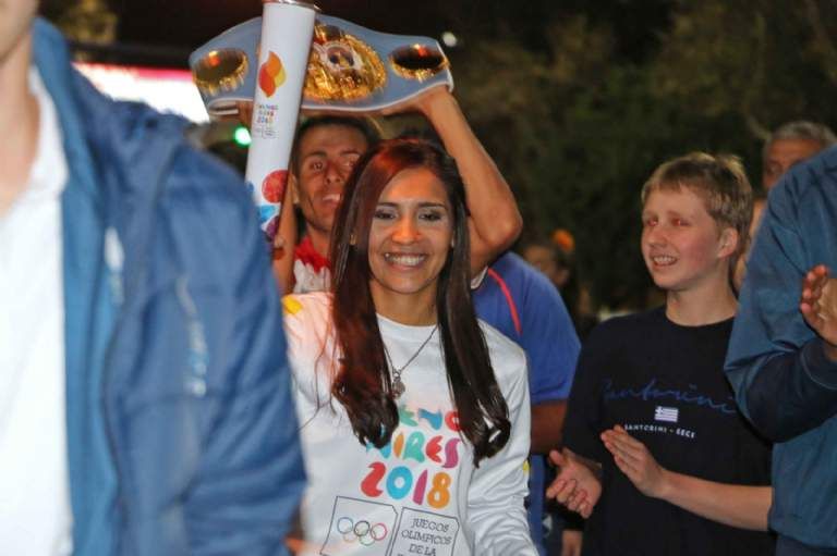 También integró el tour la campeona del mundo de boxeo, Leonela Yúdica, quien hizo el recorrido en compañía de su cinturón mundial. Pero sin dudas el momento emotivo de la noche fue cuando Facu Cordero Carracedo, campeón de patinaje artístico, tomó la antorcha y continuó el circuito.