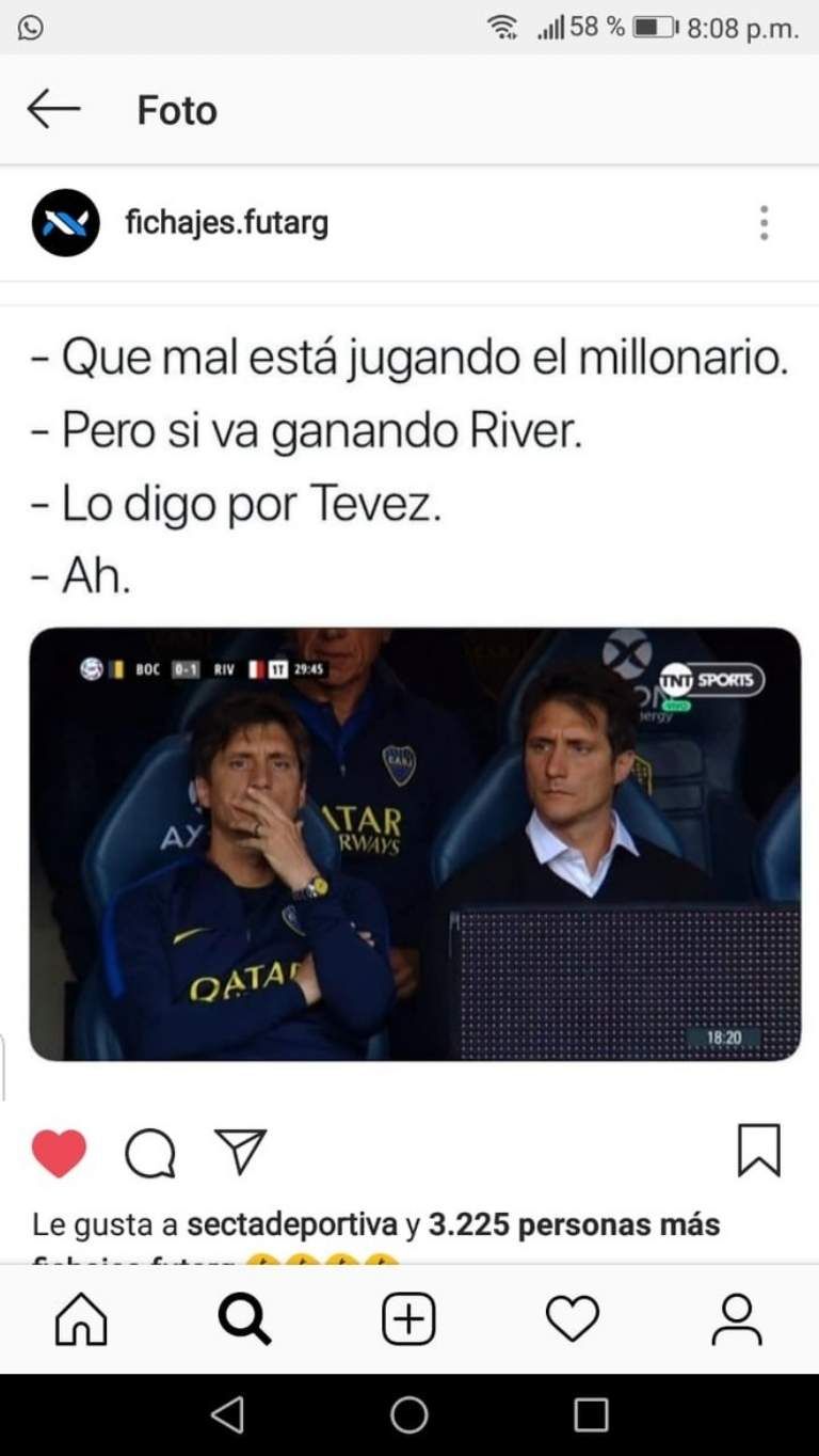Luego del triunfo 2-0 de River ante Boca en la Bombonera, con goles del Pity Martínez y Nacho Scocco, se jugó otro clásicos: el de los memes. No podían faltar las cargadas virtuales luego de otro cachetazo del equipo de Gallardo ante los de Guillermo, quien fue uno de los principales apuntados junto a Carlos Tevez. ¡Miralos!