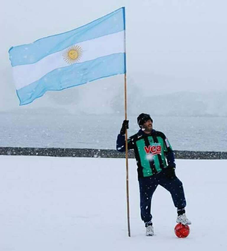 "A esta camiseta la visto con mucho orgullo. Además porque es de mi hermano, quien me acompañó y me acompaña siempre. Creo que ni Maradona ni Pelé tienen fotos en la cancha antártica. Quería compartir estas fotos con la familia verdinegra y les deseo un feliz aniversario", contó Guillermo.