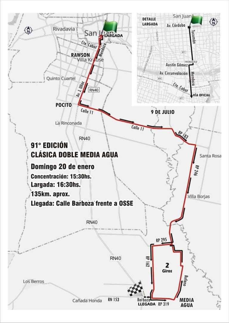 Con inicio en la esquina de Motos Lucero en el centro sanjuanino arrancó la ultima carrera que tiene como ante sala la Vuelta Internacional a San Juan. La histórica Doble Media Agua, tras 135 kilómetros de recorrido, tendrá su final en el departamento Sarmiento.