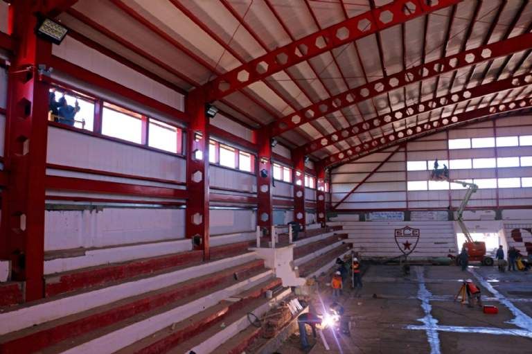 El Sporting Estrella lucirá como nuevo cuando sea inaugurado en el marco de los Juegos Binacionales. La mítica cancha de básquet ya luce con techo y por estos días los obreros trabajan en el nuevo piso. Según explicó Emilia Castro, encargada de Infraestructura de la Secretaría de Deportes, se levantó el viejo piso de granito para colocar el parquet y equipamiento nuevo.