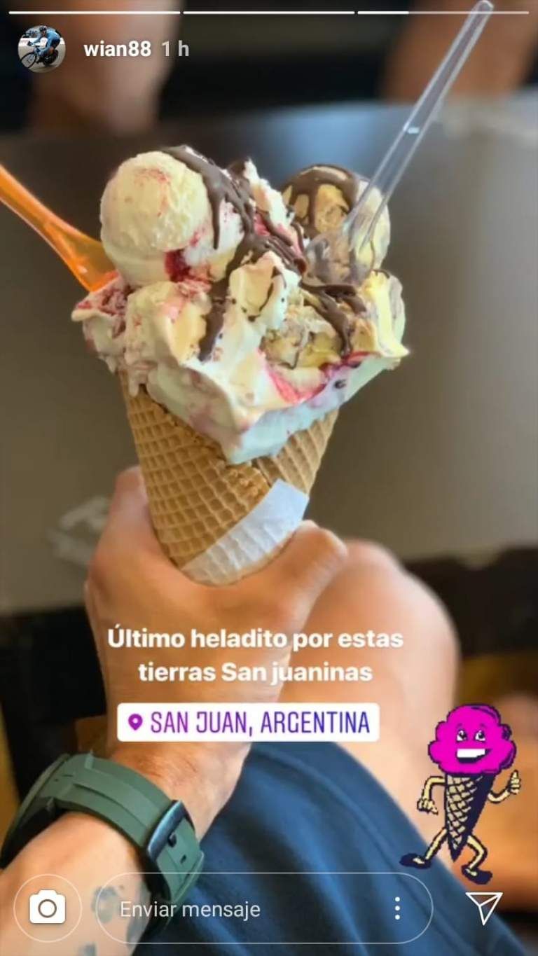 SUSCRIBITETras conseguir el histórico título de la 37º Vuelta Internacional de San Juan, el colombiano Winner Anacona disfruta de su último día de la provincia comiendo un delicioso helado.