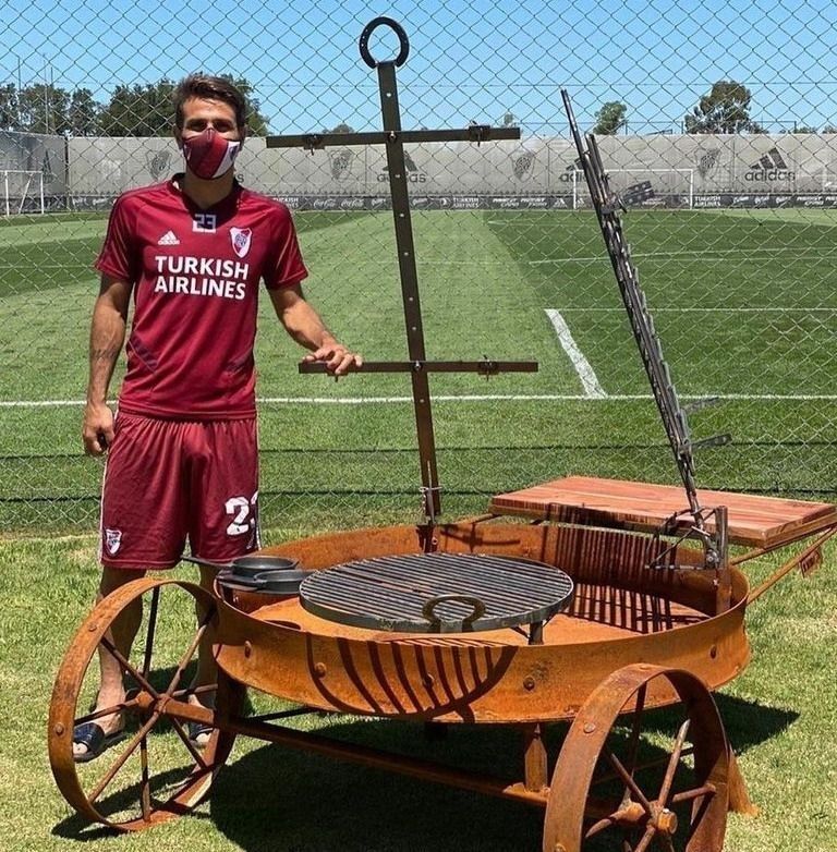 El capitán del conjunto riverplatense instaló en el lugar uno fogón, compuesto por disco de arado y estacas, que se han convertido en todo un furor a la hora de los asados.