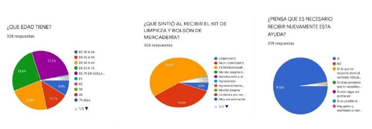 Con toda esta infraestructura comenzaron una entrega masiva de ayuda puerta por puerta, con medidas de seguridad sanitaria y también dándole la oportunidad a los abuelos de contestar una encuesta, en la que el 54% se mostró extremadamente contento y el 97% consideró que debían seguir implementándolo.