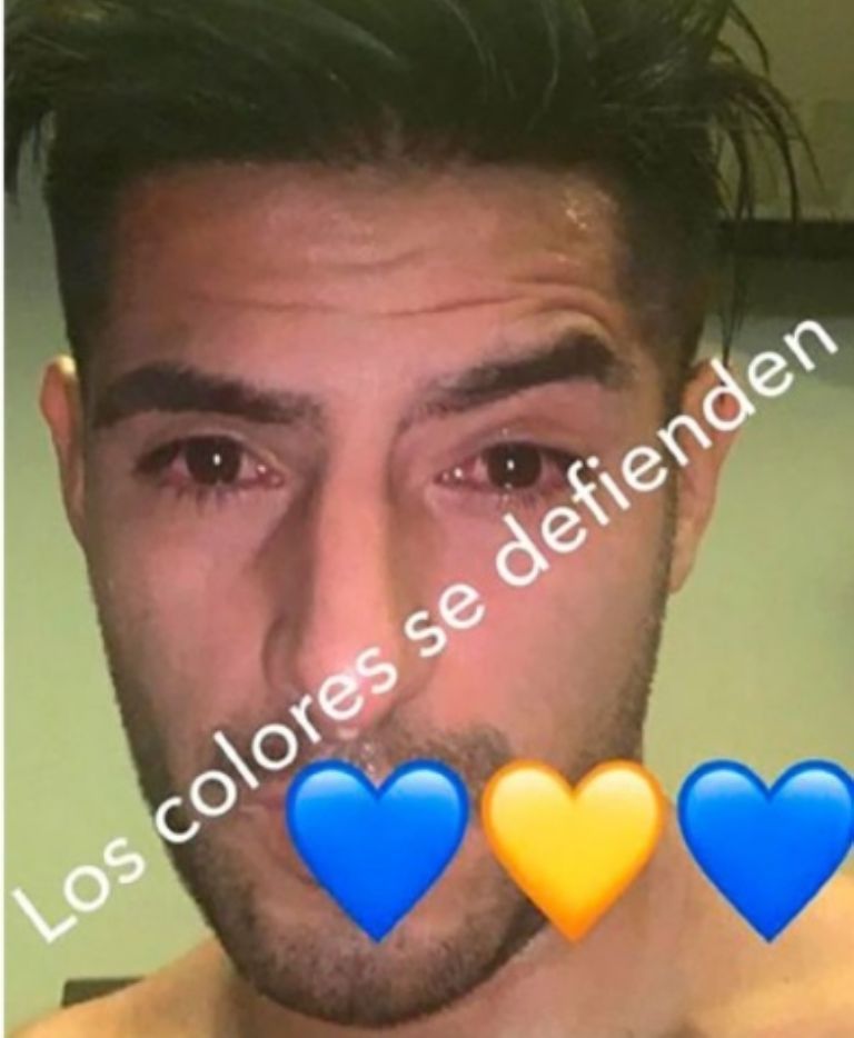 Luego fue el turno de Carlos Zambrano, uno de los 9 imputados por la gresca dentro del estadio. El defensor peruano subió una historia en Instagram en la que se lo ve con los ojos llorosos, producto de los gases lacrimógenos que lanzó la policía local durante los incidentes. “Los colores se defienden”, escribió el jugador, junto a dos corazones azules y uno amarillo.
