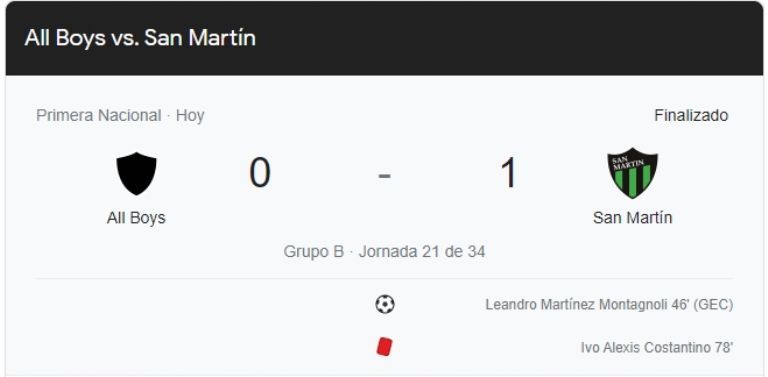 El partido se dio en el marco de la fecha 21º de la Zona B de la Primera Nacional. Si bien fue irregular, el conjunto sanjuanino aprovechó un gol en contra de Leandro Martínez, luego supo aguantarlo, y ese tanto fue suficiente para la victoria.