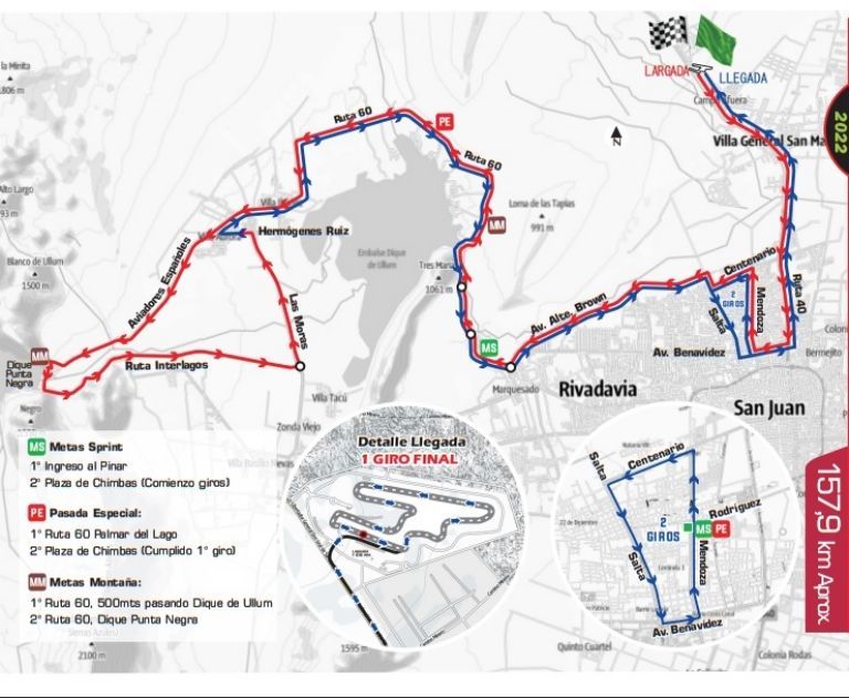 Los ciclistas partirán desde al autódromo El Villicum, para luego recorrer el interior de los departamentos Chimbas y Rivadavia. Después recorrerán las rutas del Dique de Ullum y Punta Negra, para luego retornar por el mismo trazado al circuito albardonero.