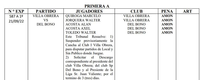 Hace una semana atrás y luego de un taller para eliminar la violencia del fútbol, una cancha sanjuanina protagonizó una nueva escena que mancha la disciplina. El entretiempo del encuentro entre el local Villa Obrera y Del Bono se vio interrumpido por una persona que agredió a uno de los jueces de línea en el vestuario. El presidente de la Liga Sanjuanina llegó hasta la Boutique de Chimbas, intentó mediar y calmar la situación, pero el equipo de la Esquina Colorada se retiró del campo y no quiso jugar los segundos 45 minutos. El Tribunal de Penas sacó el falló, multó a la institución y pidió el descargo hasta de Juan Valiente.