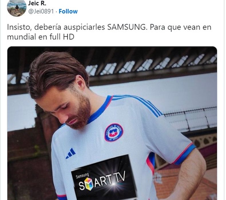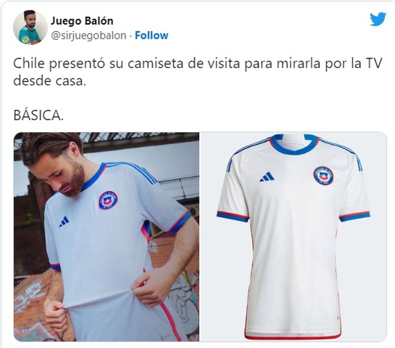 Cuando no falta nada para el comienzo del Mundial de Qatar, las Selecciones presentaron su indumentaria oficial que usarán en la Copa del Mundo. Si bien la Argentina ya mostró hace tiempo la titular de bastones, la que se conoció este lunes fue la alternativa y de color violeta. Más allá de eso, y de todo el revuelo de las redes, el que también expuso la suya fue Chile. La Roja usó a Ben Brereton Díaz para lucir la prenda blanca que usará en los cotejos amistosos del año. Estallaron los memes. Mirá.