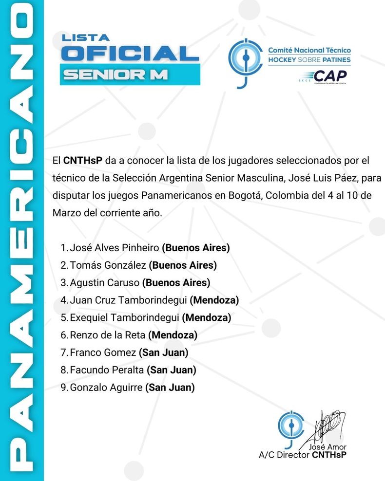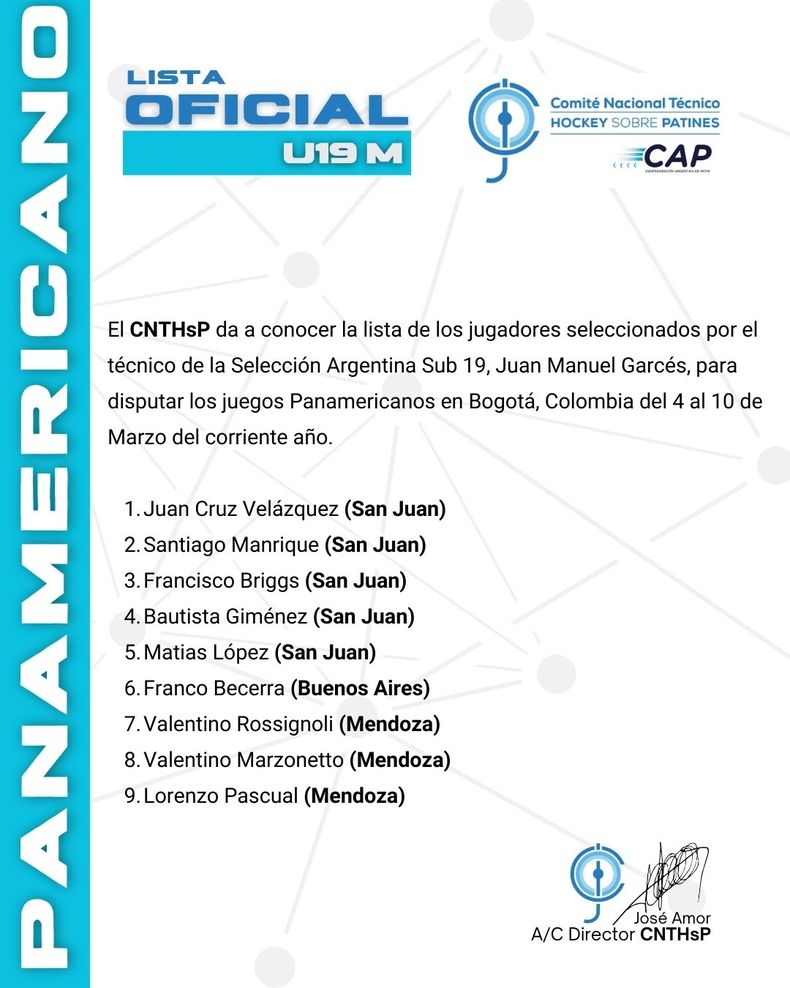 El Comité Nacional Técnico de hockey sobre patines informó en las últimas horas los deportistas seleccionados por los entrenadores del seleccionado senior femenino, senior masculino y sub19 varones para disputar los Juegos Panamericanos en Bogotá (Colombia). El torneo se llevará a cabo del 4 al 10 de marzo y servirá de clasificatorio para los World Skate Games que se desarrollarán en Novara, Italia, a fin de año.